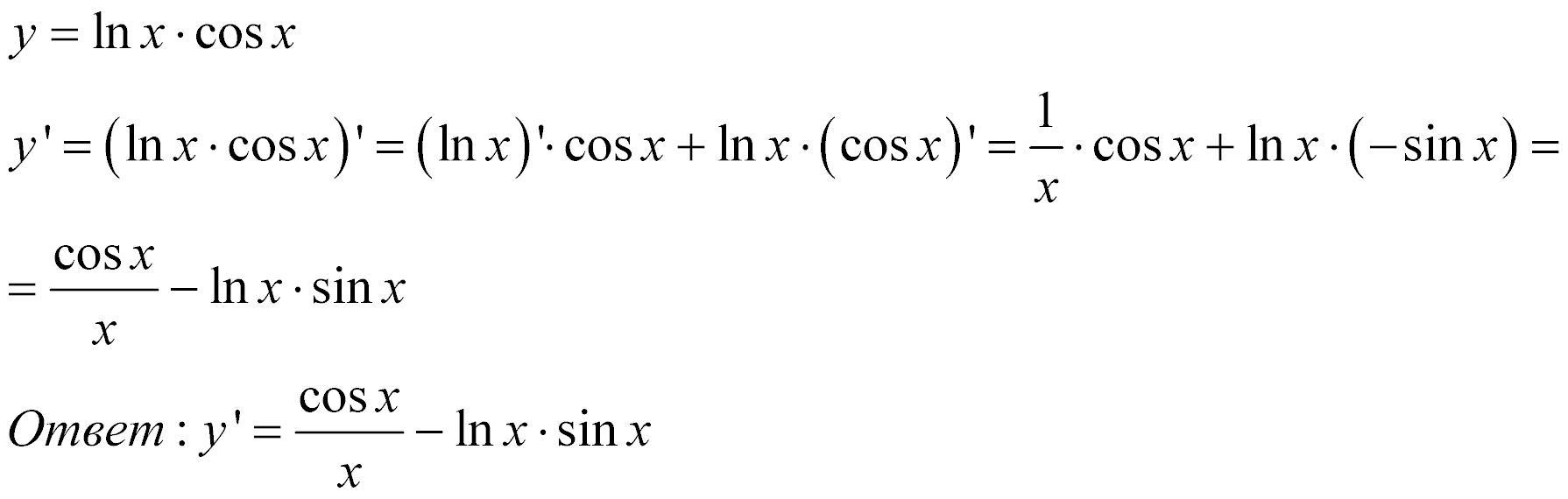 СРОЧНО Найти производную функции y=ln x*cos x