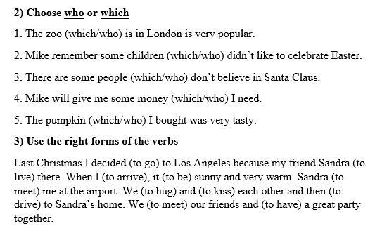 1 to go 2 lived 3 arrived 4 was 5 met 6 hugged 7 kissed 8 drove 9 met 10 had