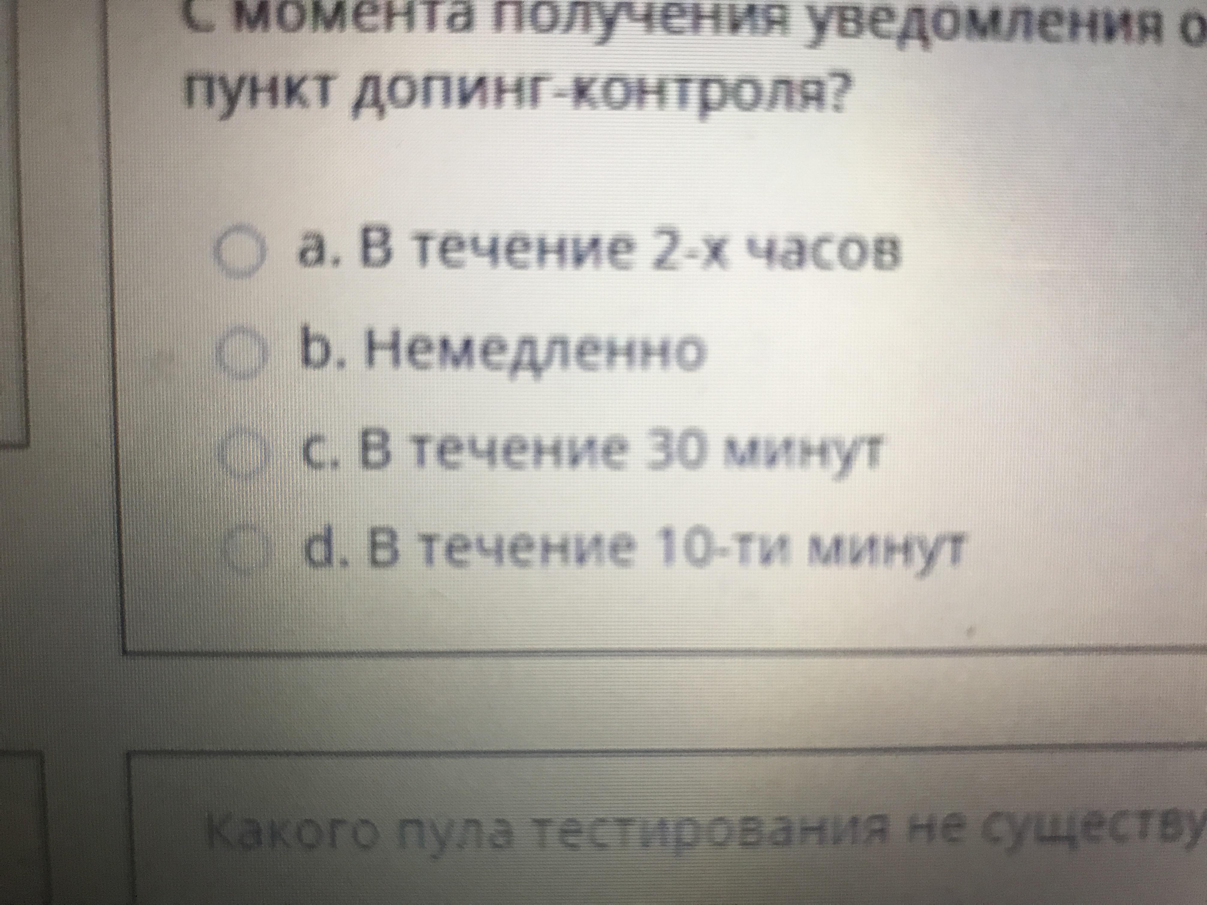 С момента получения уведомления о прохождении допинг-контроля, как скоро спортсмен должен прибыть на пункт допинг-контроля?