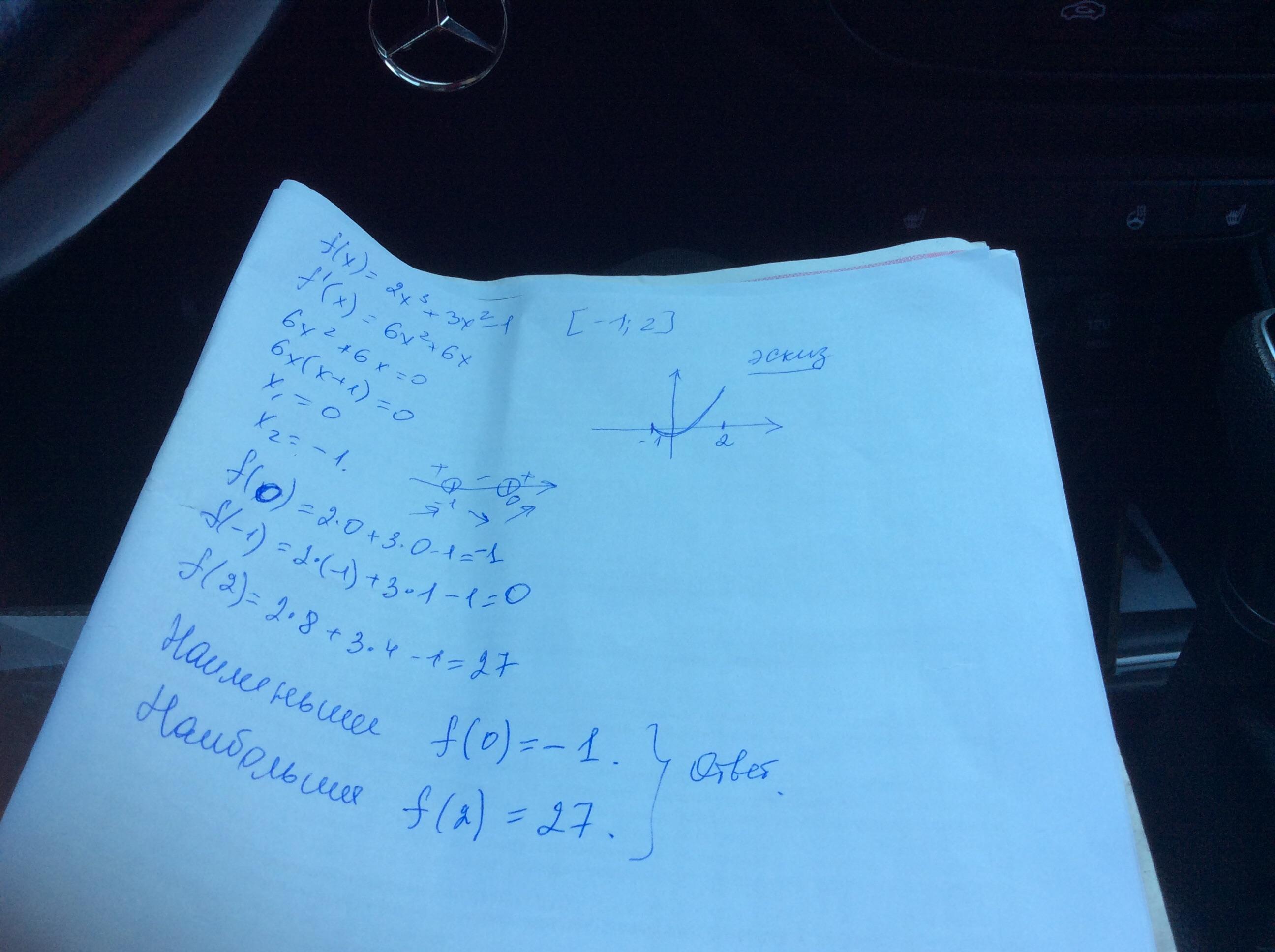 Найти наибольшее и наименьшее значение функции f(x) =2x^3 +3x^2 - 1 на отрезке [-1:2] распишите пожалуйста
