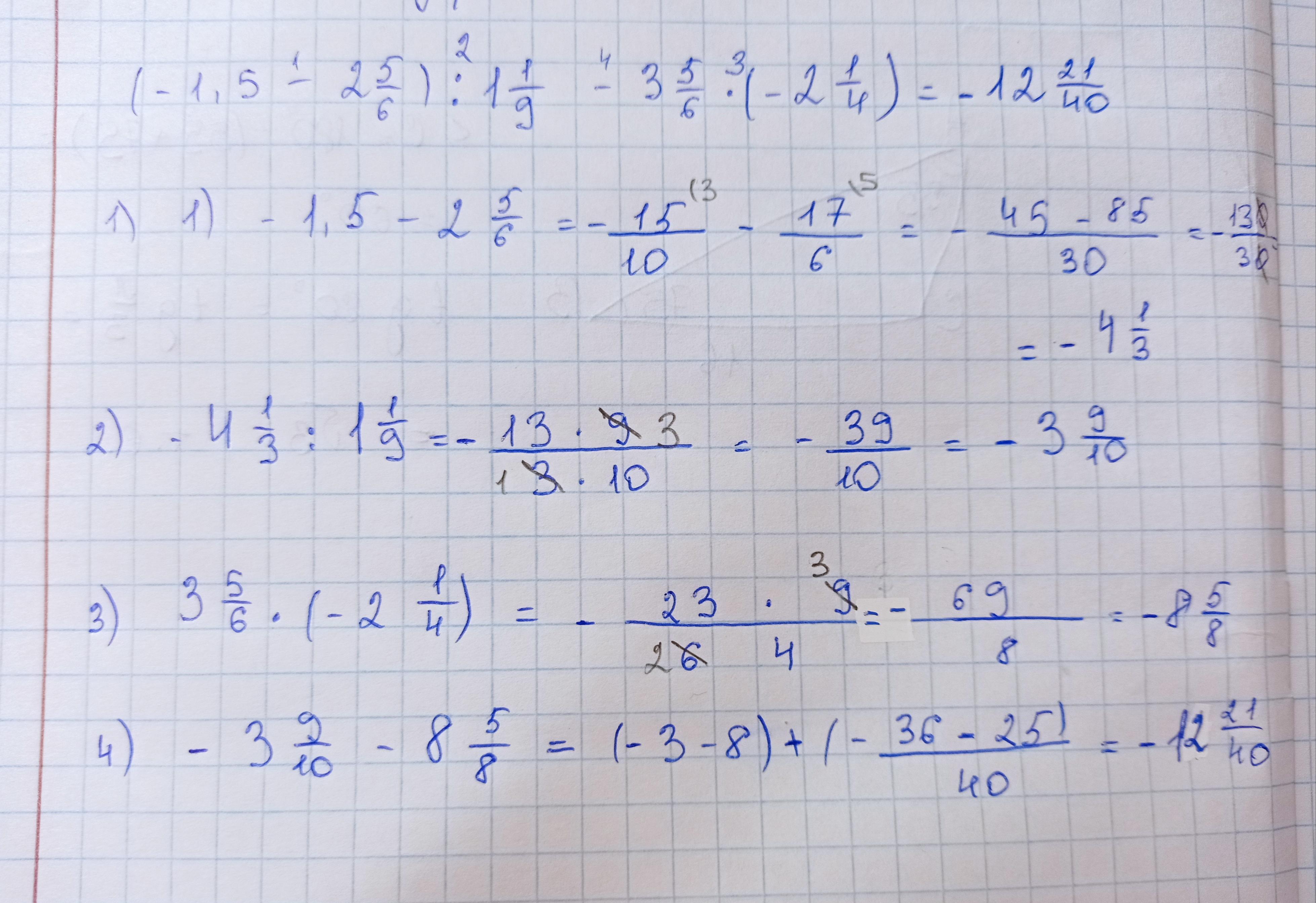 1) -1,5 - 2. 5/6 = -1. 5/10 -