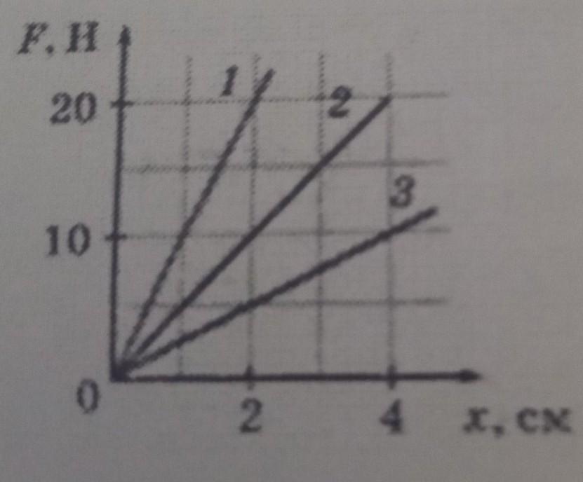 6. На графике показана зависимость силы упругости от удлинения пружины. Определите коэффициент жесткости k для первого тела. [2]