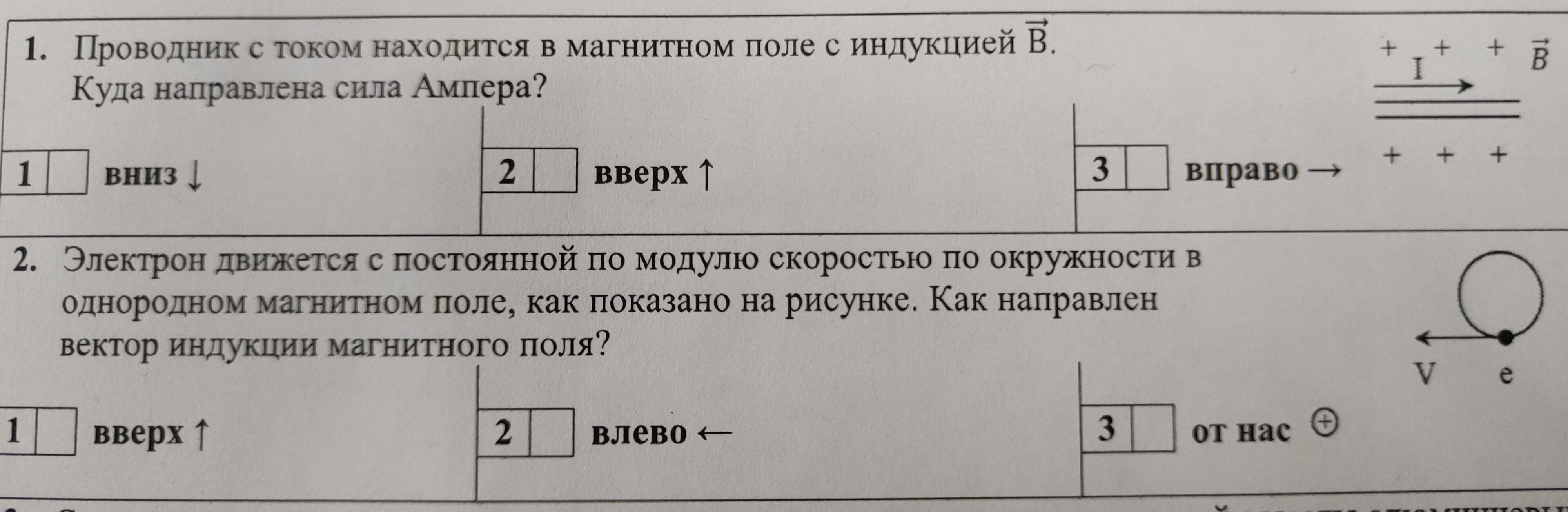1. Сила действия однородного магнитного поля на проводник с током прямо пропорциональна силе тока, длине проводника, модулю вектора индукции магнитного поля, синусу угла между вектором индукции магнитного поля и проводником: F=B.I.ℓ. sin α — закон Ампера.