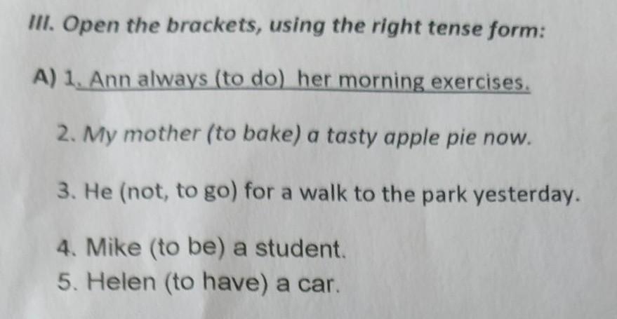 1-does,2-is baking,3-doesn’t go,4-is,5-has got