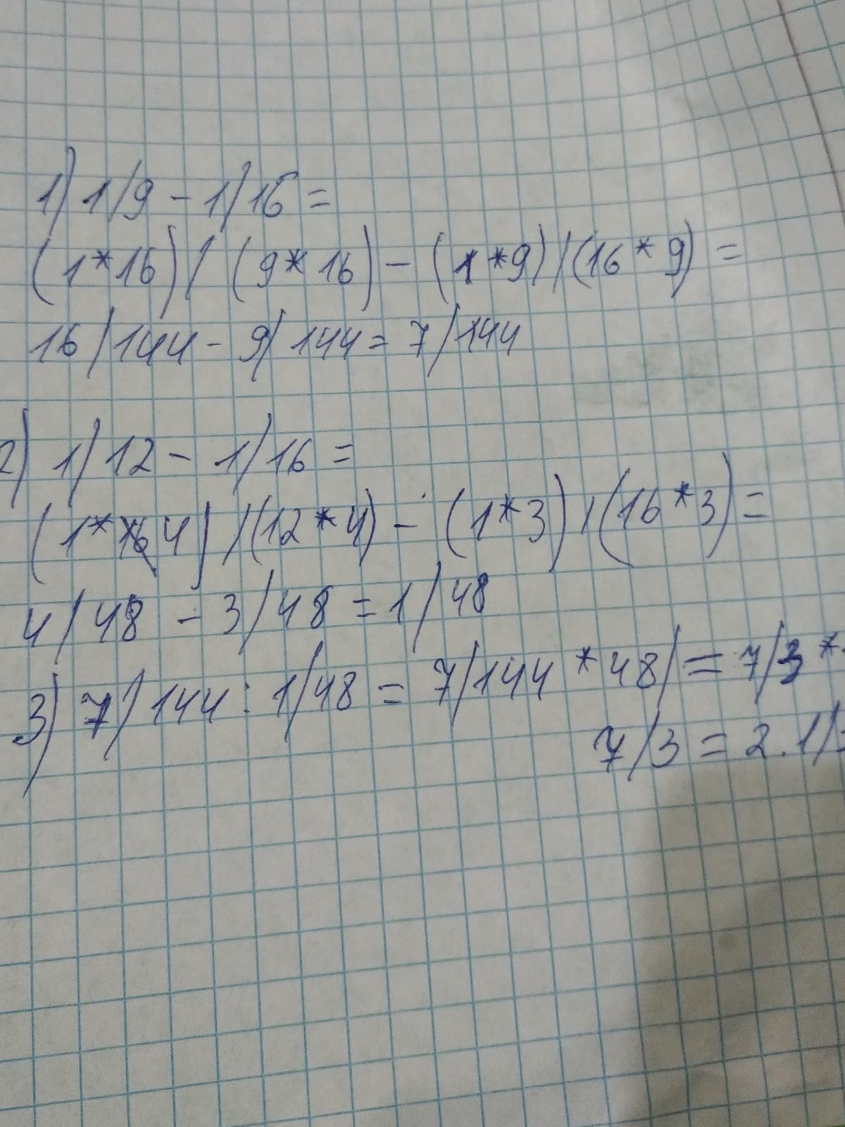 Деление обыкновенных дробей и смешанных чисел. Урок 1 Вычисли. (1/9-1/16)÷(1/12-1/16)=? Ответ: пж помогите дам 100 балов и сделаю лучшим ответов