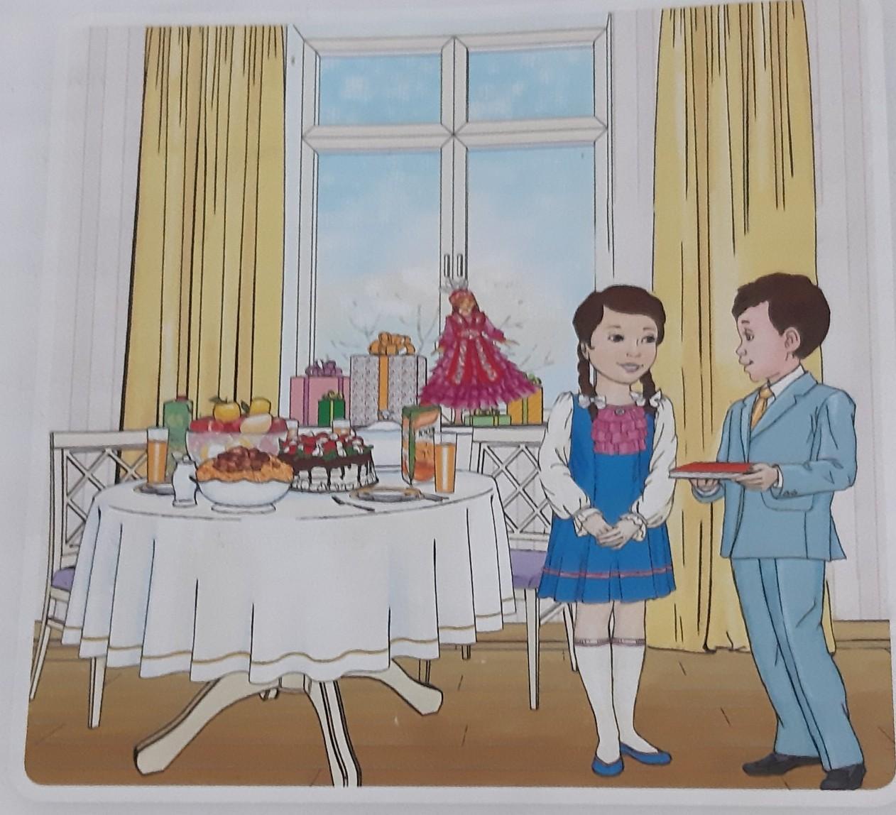 Айманның туылған күні.Ол дастарханды әдемі етіп жайып қойған .Жәнеде терезесінің алдында қуыршақ тұр.Айдос ағасы сыйлық әкеліп берді .Айман ағасы әкелген сыйлыққа мәз мирам болды