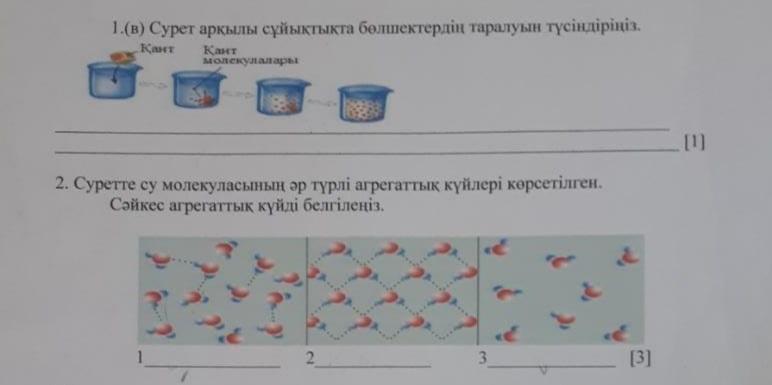 2.На рисунке показаны различные состояния молекулы воды. Укажите соответствующее агрегатное состояние