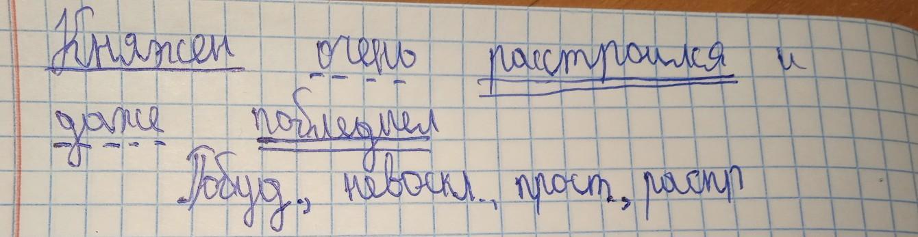 ребята, помогите, пожалуйста, разобрать предложение по членам и записать всего черты. Ну типа восклицательные невосклицательное. Предложение:Княжен очень расстроился и даже побледнел.заранее спасибо.