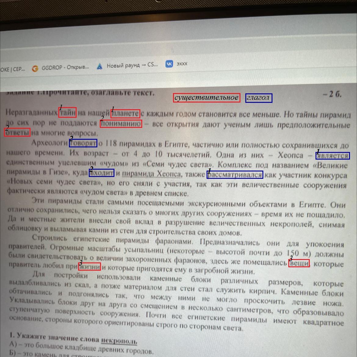 Выпишите из текста по 2 существительных 1, 2,3 склонения