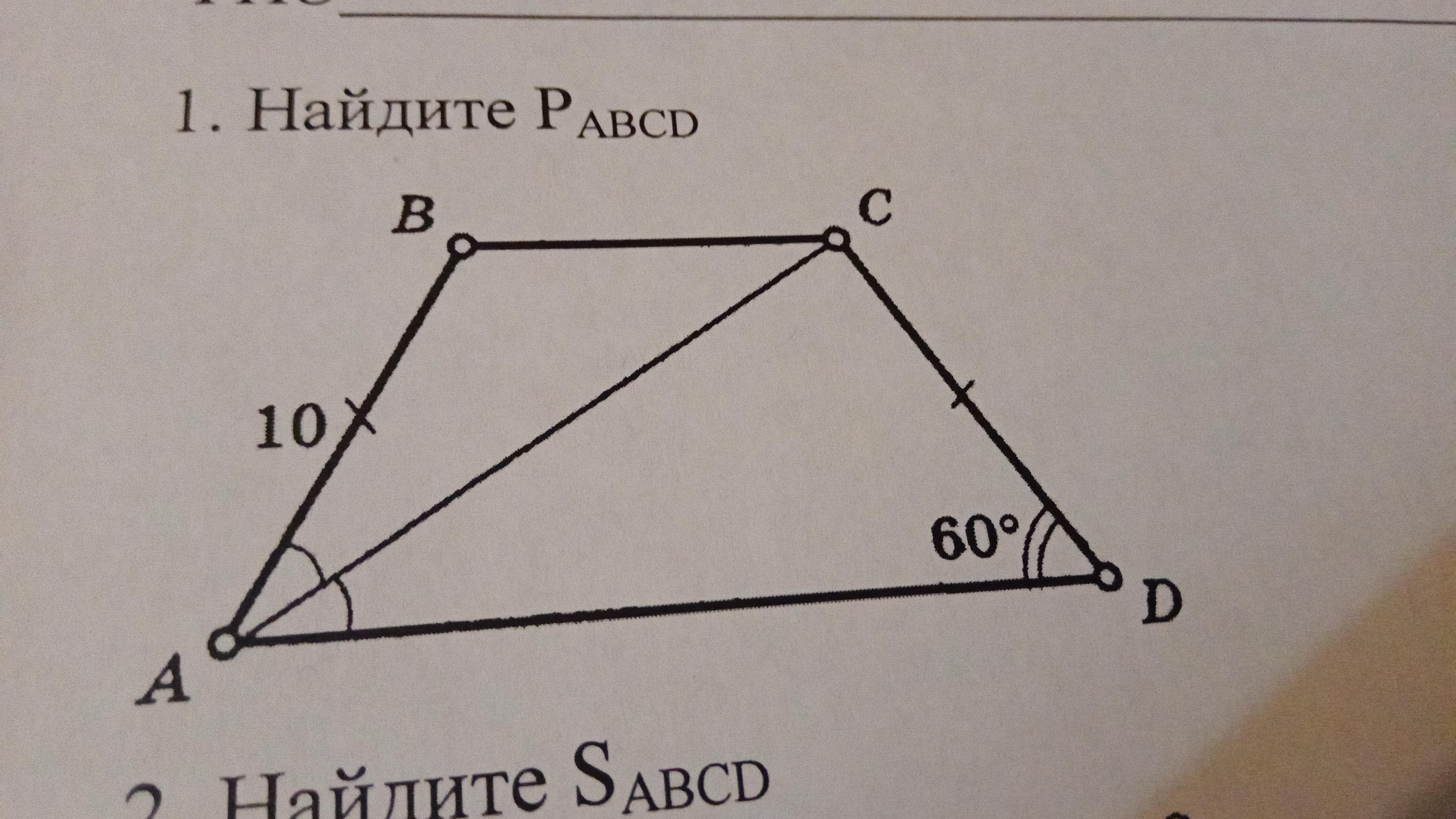 <BCA=<CAD-накрест лежащие, при пересечении параллельных прямых секущей. Значит АВС равнобедренный и ВА=ВС=10