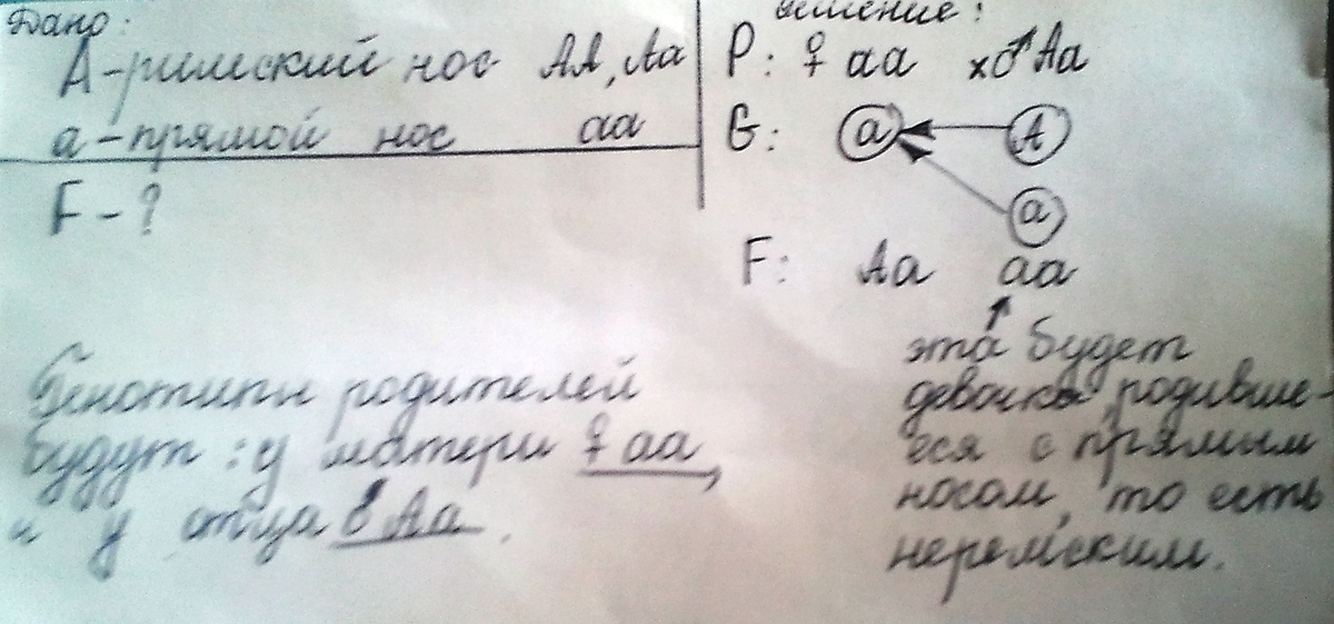 Мать: аа. дети, неримский нос то есть, есть дети с аа, то у отца была а, но он римский нос, поэтому у него Аа.