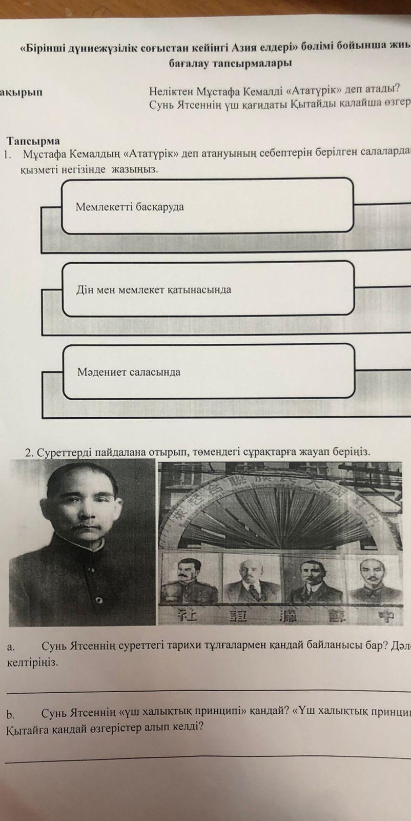 b) Сунь Ятсенин "уш халыктык принсиби"