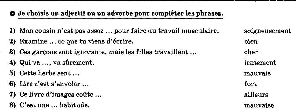 5. C'est une actrice … . Elle a joué son rôle … bien. /exellent
