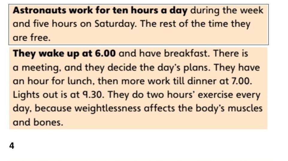 Прочтите другие части текста. Выберите заголовок для каждого абзаца из следующих: день космонавта; личная жизнь; Станция; будущее МКС; цели; еда. Напишите правильный заголовок над параграфом