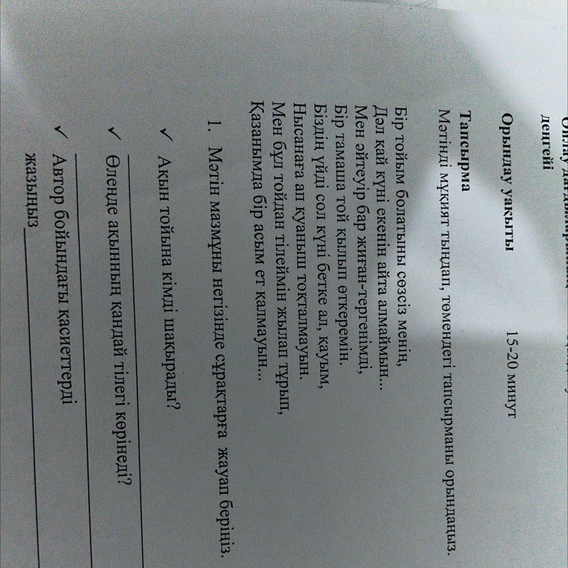 1)Автор тойына ауылдастарының келгенңн қалайды, солармен бірге қуанышын бөліскісі келеді.