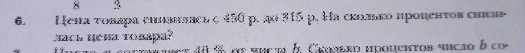 цена товара снизилась с 450 р. до 315 р. На сколько процентов снизилась цена товара? номер 6