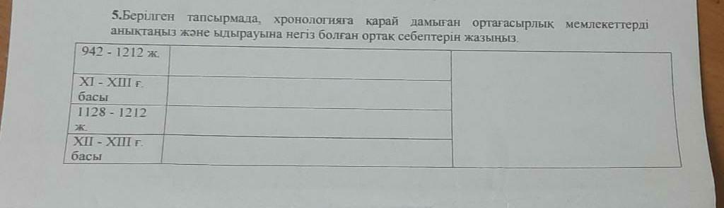 берілген тапсырмада , хронологияға қарай дамыған ортағасырлық мемлекеттерді анықтаңыз және ыдырау на негіз болған ортақ себептерін жазыңыз