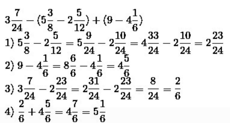 4)7 106/48-3 7×2/24×2=7 106/48-3 14/48=4 92/48=5 44/48