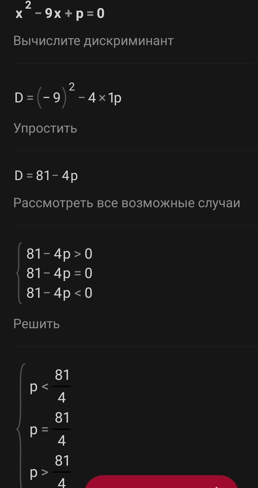 Число 6 является корнем уравнения x²- 9x + p = 0 Найдите второй кор значение р, используя теорему Виета.