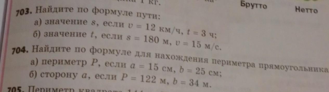 703. Найдите по формуле пути: а) значение s, если U = 12 км/ч, t = 3 ч, б) значение t, если 8 = 180 м, U = 15 м/с. 04. Найдите по формуле для нахом по