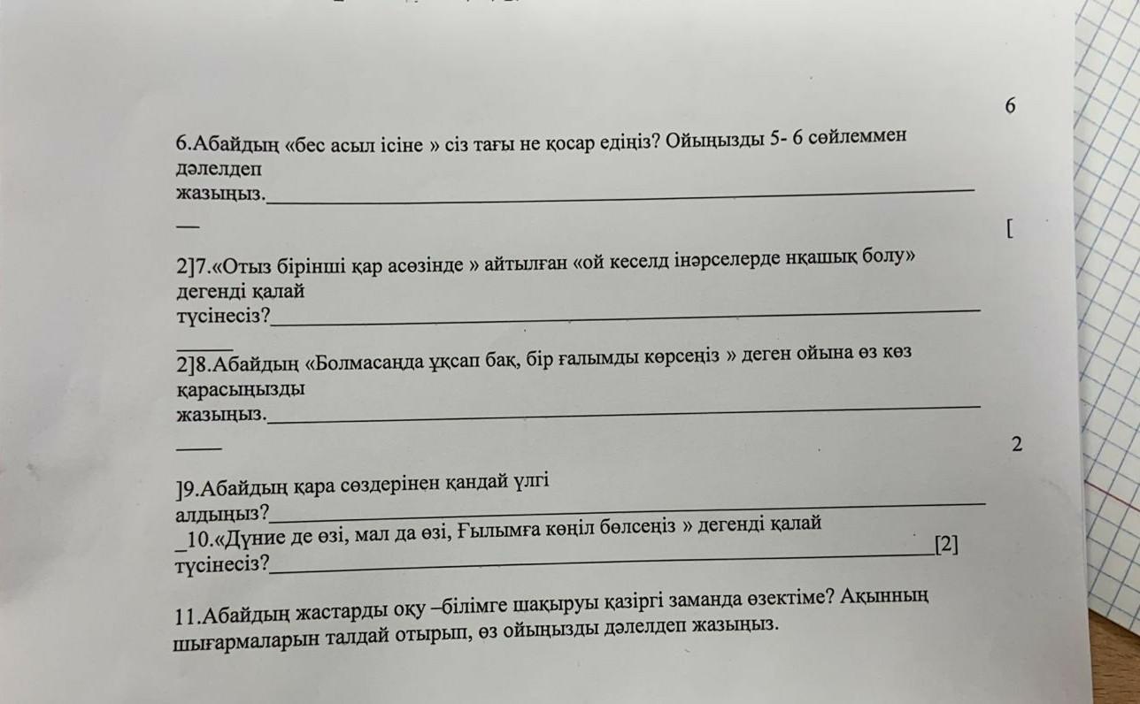 6. Абай атамыздың айтқанына қосарым әрқашан түзу жолмен жүріп,қулық,ұрлық,қорлық жәнеде өтірік айтпау керек.Ата бабаларымыз ға кір келтіру ол өте жаман іс