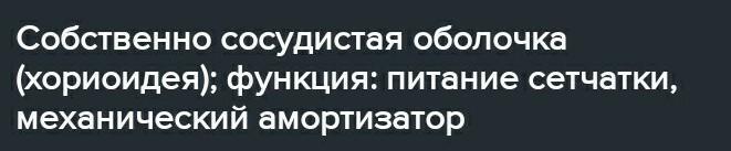 Основная функция сосудистой оболочки — регулирование обмена веществ и обеспечение питания тканей глаза, также регулирует внутриглазное давление, участвует в терморегуляции глаза, так как образует тепловую энергию