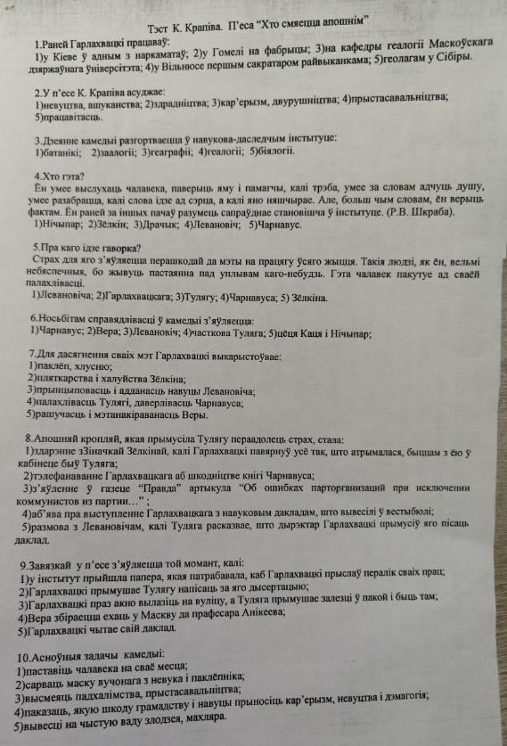 Помогите пожалуйста выбрать правильные ответы, бел лит 10 класс, Кандрат Крапіва "хто смяецца апошні". Срочно!!!