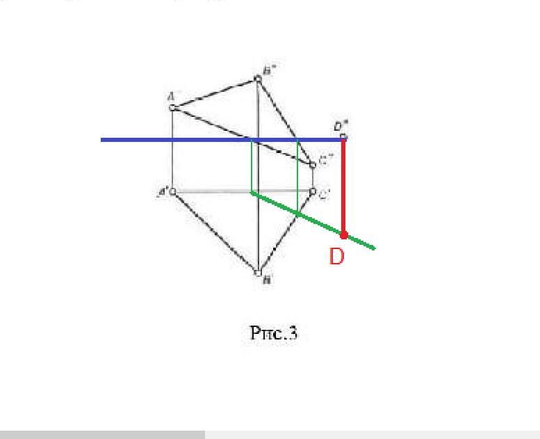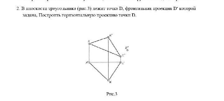 В плоскости треугольника лежит (рис.3) лежит точка D, фронтальная проекция D° которой задана, Построить горизонтальную проекцию точки D.