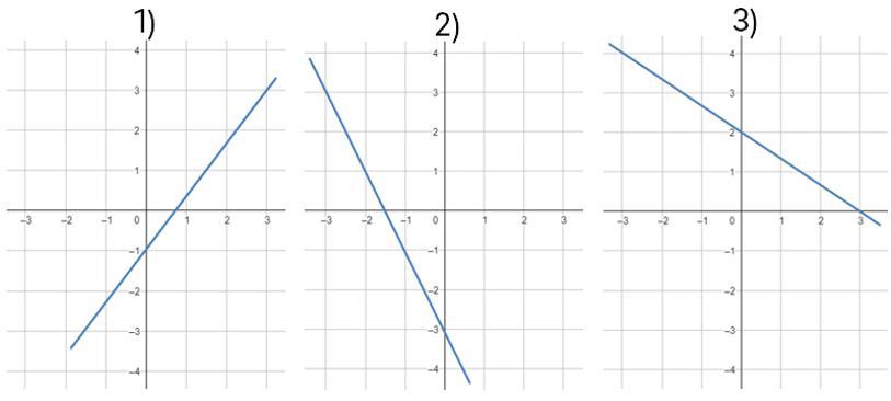 На рисунках изображены графики функций вида y = kx + b. Установите соответствие между знаками коэффициентов k и b, и графиками функций.