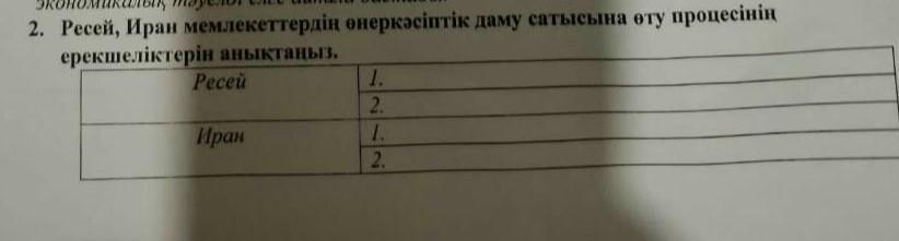 Ресей , Иран мемлекеттердің өнеркәсіптік даму сатысына ету процесінің ерекшеліктерін анықтаңыз