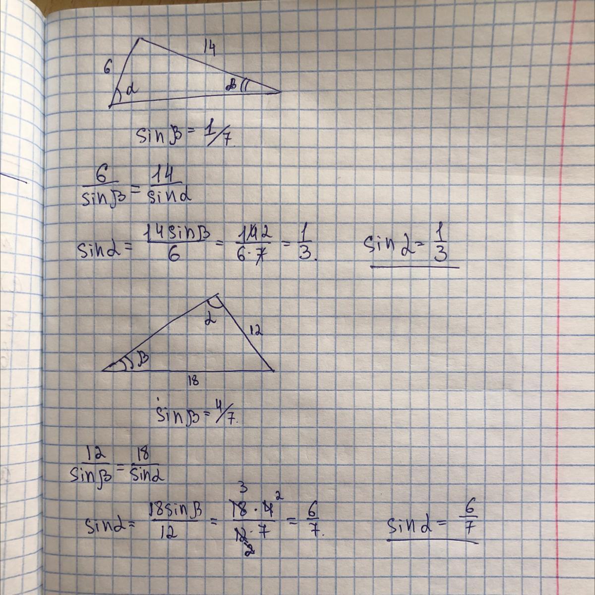 Пользуемся теоремой синусов и составляем пропорцию, решение на фотографии.