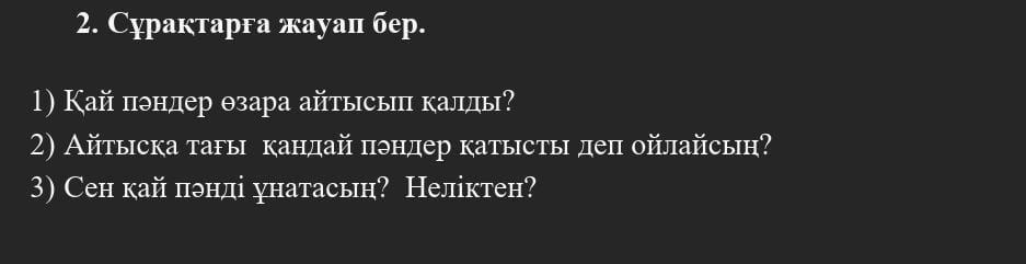 2) мен айтысқа қазақ тілі, орыс тілі, ағылшын тілі пәндері қатысты деп ойлаймын