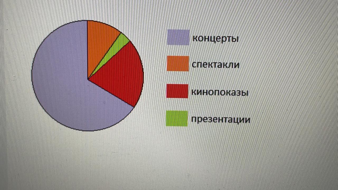 Определите по диаграмме, какой процент по отношению ко всем мероприятиям занимают презентации: