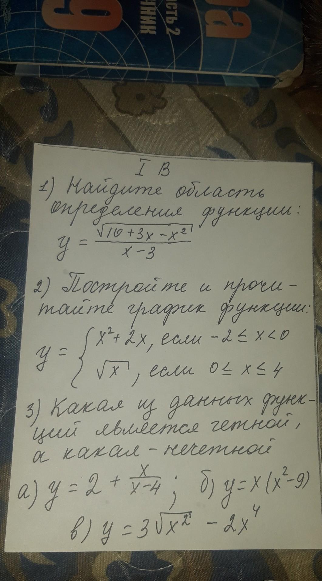 3. а) первая не является ни четной, ни нечетной, поскольку область ее определения не симметрична относительно начала отсчета, б) нечетная, т.к. у(-х)=-х*((-х)²-9)=-х*(х²-9)=-у(х)