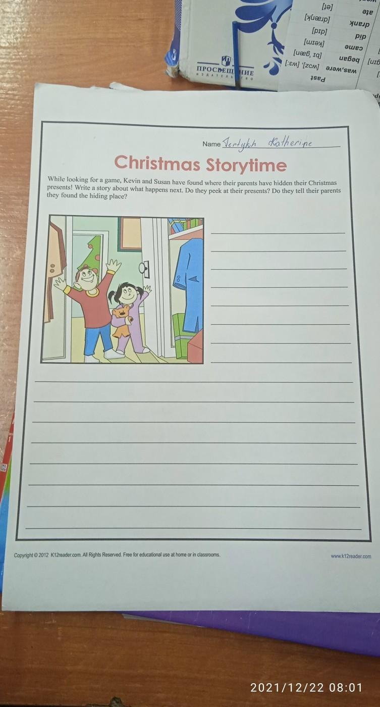 Нужно написать продолжение истории(на русском, на английском, не важно). Минимум 10 несложных предложений, но чтобы поместилось все на этот листок.