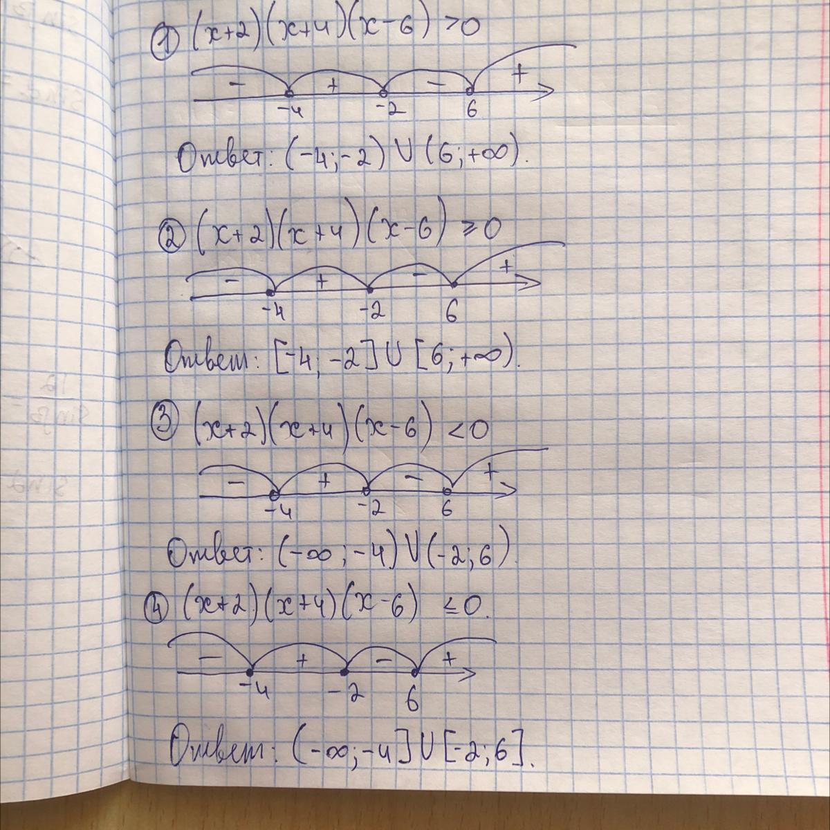 решите неравенство методом интервалов (х+2)(x+4)(х-6) 0