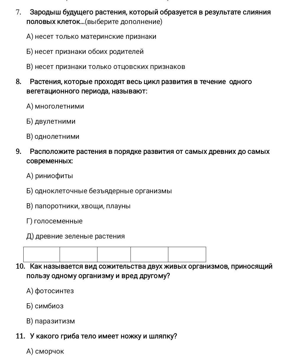 7,А 8,А 9,В начнем с древних это)первое Б потом Г потом А потом Д и В (10) В (11)мухомор)