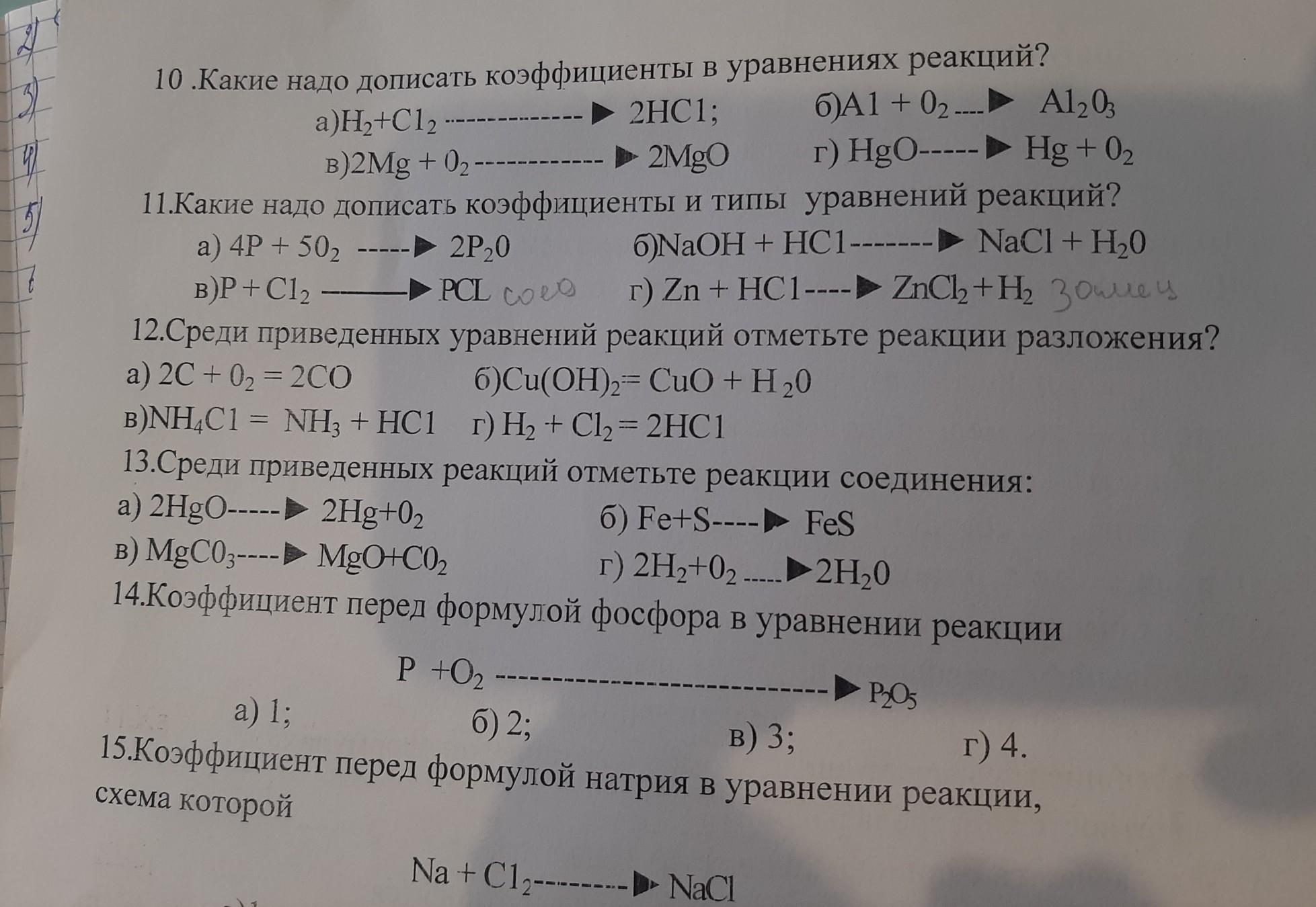 10. а) H2+Cl2 ------- 2HCL (так же остаётся)