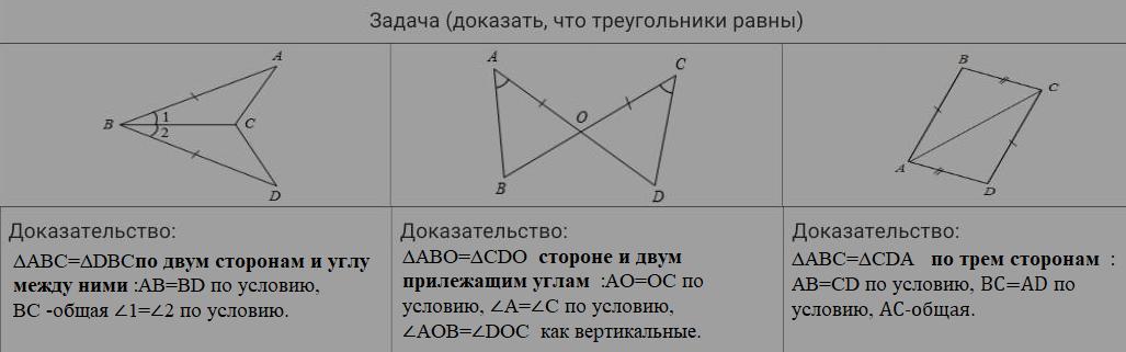 Если три стороны одного треугольника соответственно равны трем сторонам другого треугольника, то такие треугольники равны.