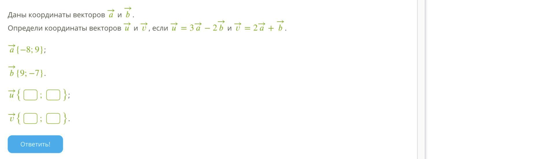 чтобы найти сумму или разность векторов, нужно сложить или вычесть их соответствующие координаты, чтобы умножить вектор на число, надо на это число умножить все координаты.