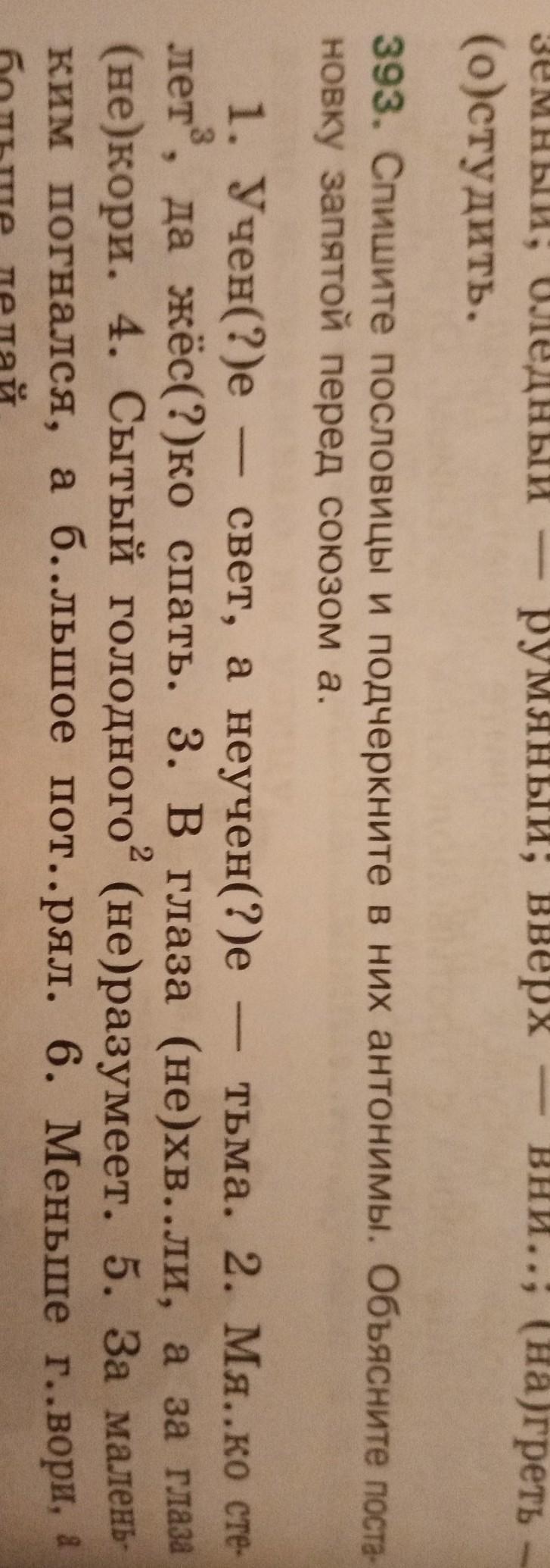1) ученье, неученье 2) мягко, жёстко 3) не хвали, не кори 4) не разумеет 5) большое потерял 6) говори
