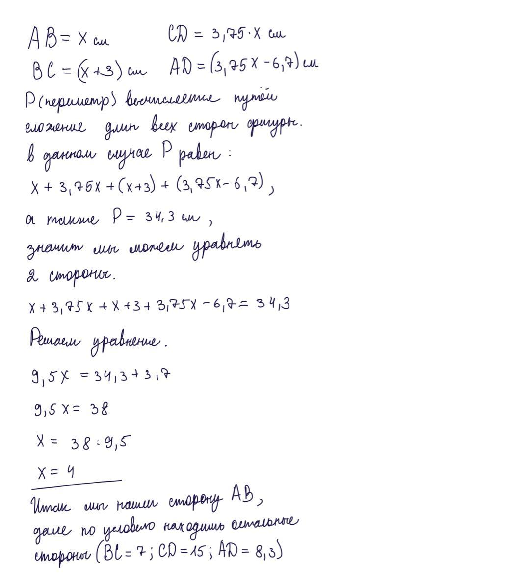 В четырёхугольнике АВСД сторона AB=X см. Выразите остальные