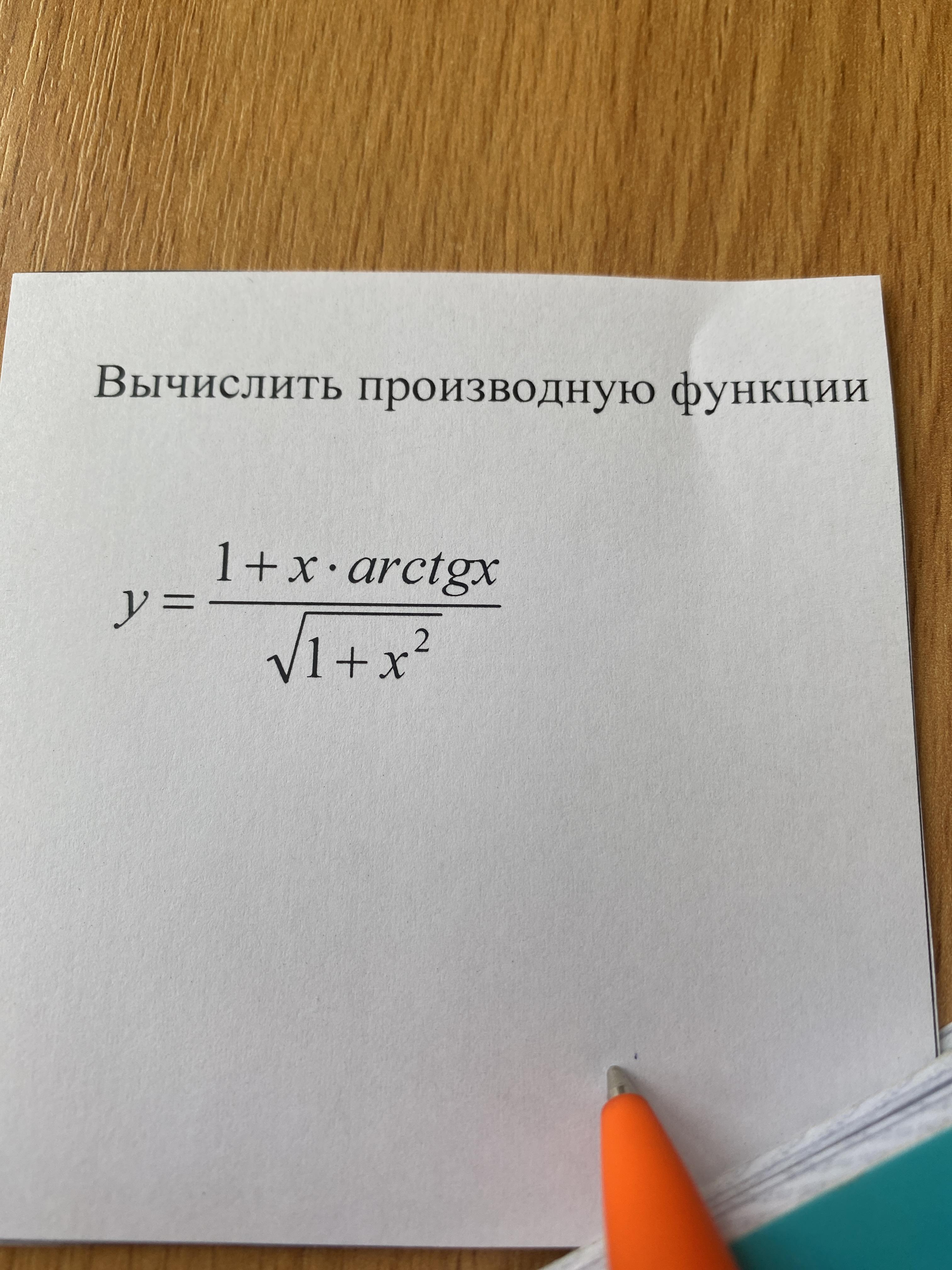 (u/v)'=(u'v-uv')/v²; здесь u=1+x*arctgx; v=√(1+x²);