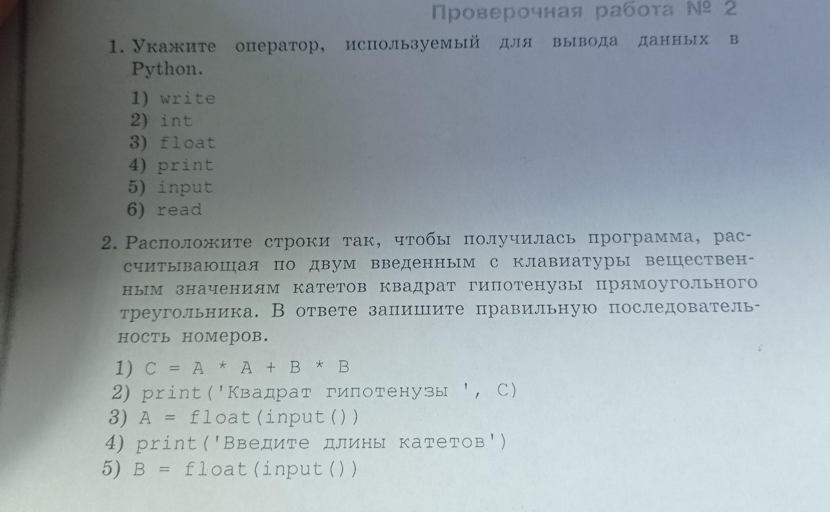 C: =A*A+B*B; Write ('Квадрат гипотенузы равен ',с);