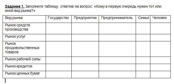 Срочно! Заполните таблицу, ответив на вопрос: «Кому в первую очередь нужен тот или иной вид рынка?»
