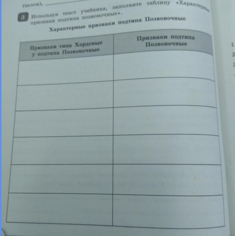 С каждого признака Позвоночные выписывает пару примеров , аналогично и второе