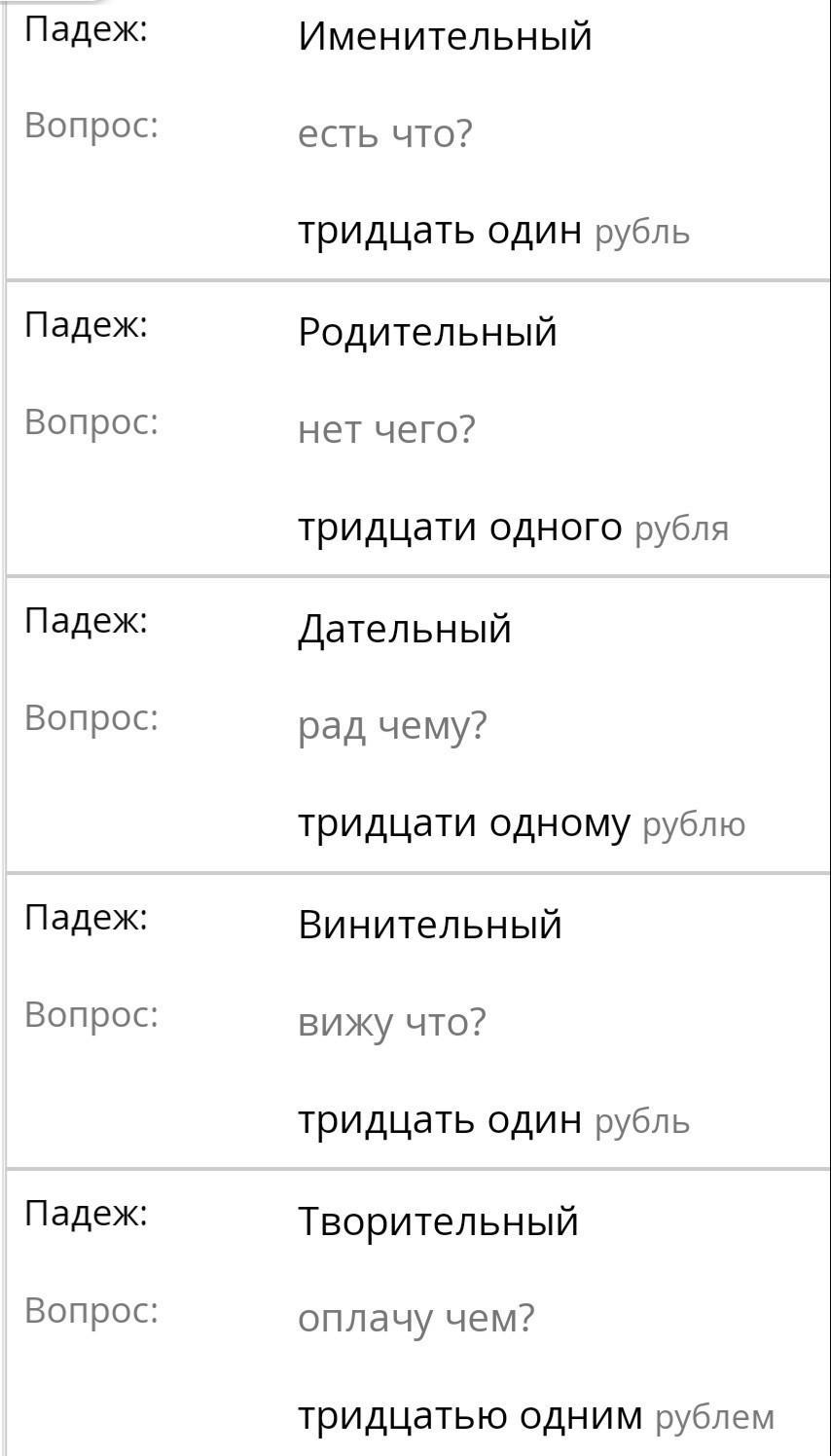 а последний предложный: о чём я думаю о тридцать одном рубле