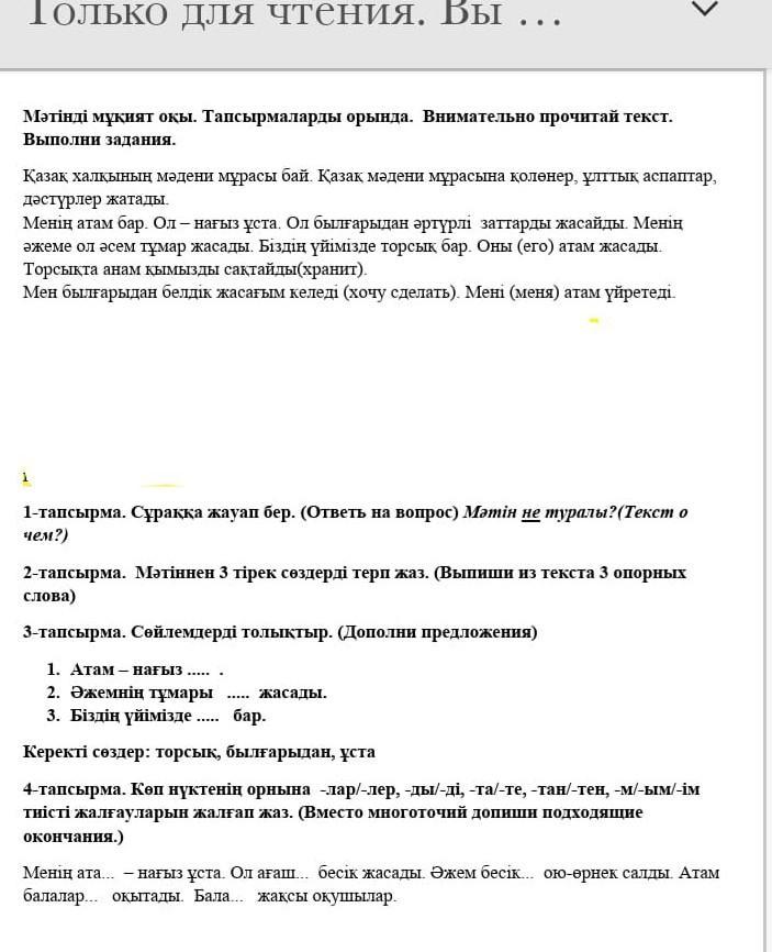 Ответ:1-тапсырма. Қазақ халқының мәдени мұрасы туралы