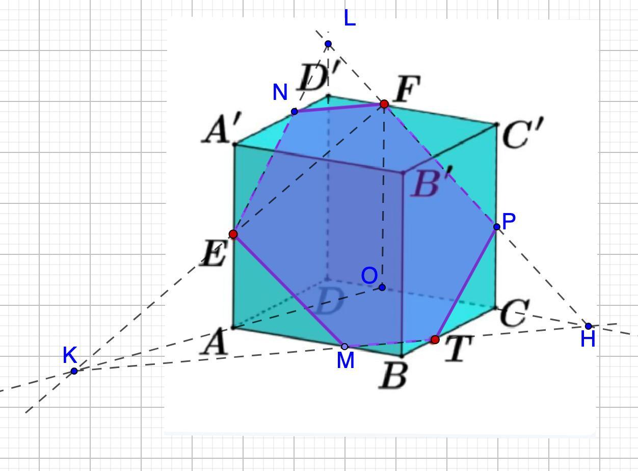 Постройте сечение многогранника плоскостью, проходящей через точки Е, F и T. Опишите