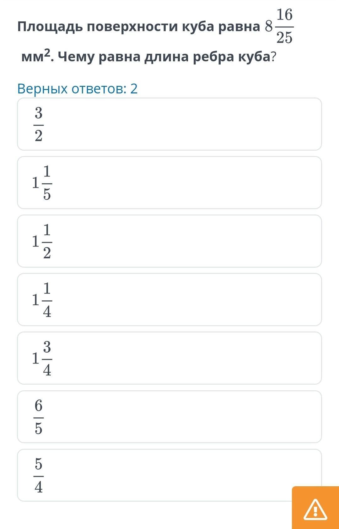 S = 6a² = 8 16/25 = 8 64/100 = 8,64 мм² - площадь поверхности куба
